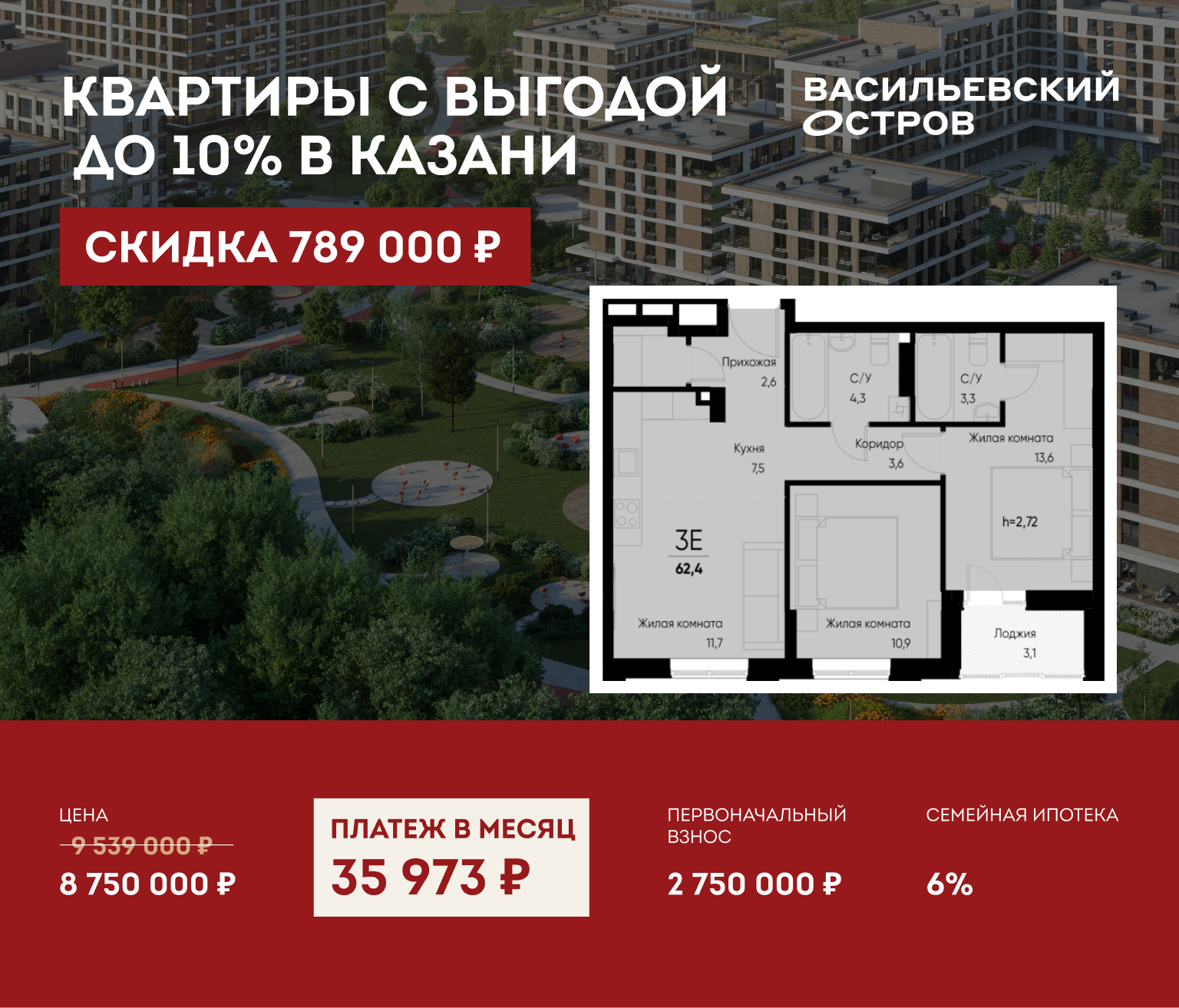 Парки и скверы «Васильевского острова» займут более 300 000 м². Это масштабные пространства для прогулок, пикников, отдыха с семьей и общения с природой.