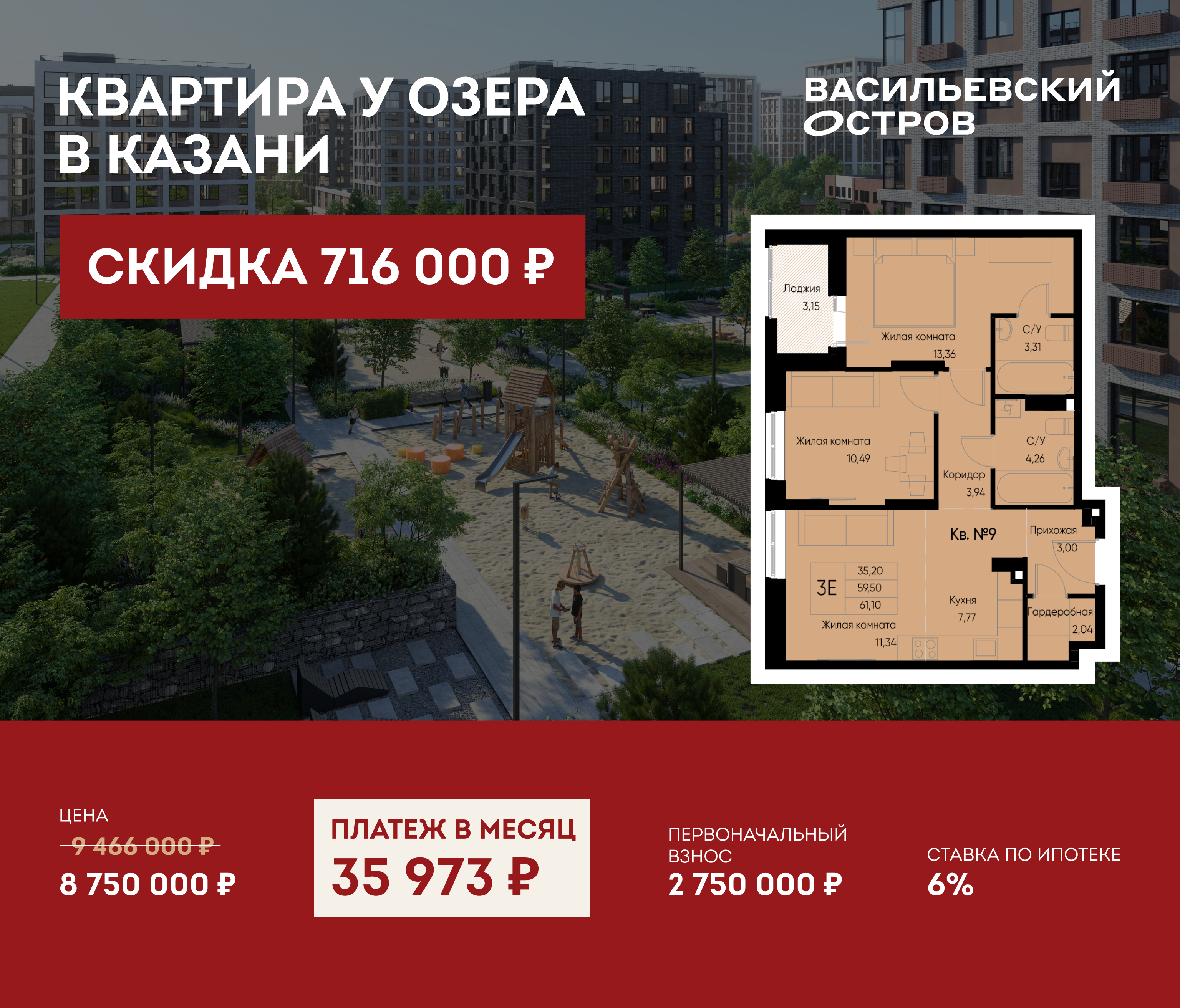 Парки и скверы «Васильевского острова» займут более 300 000 м². Это масштабные пространства для прогулок, пикников, отдыха с семьей и общения с природой.