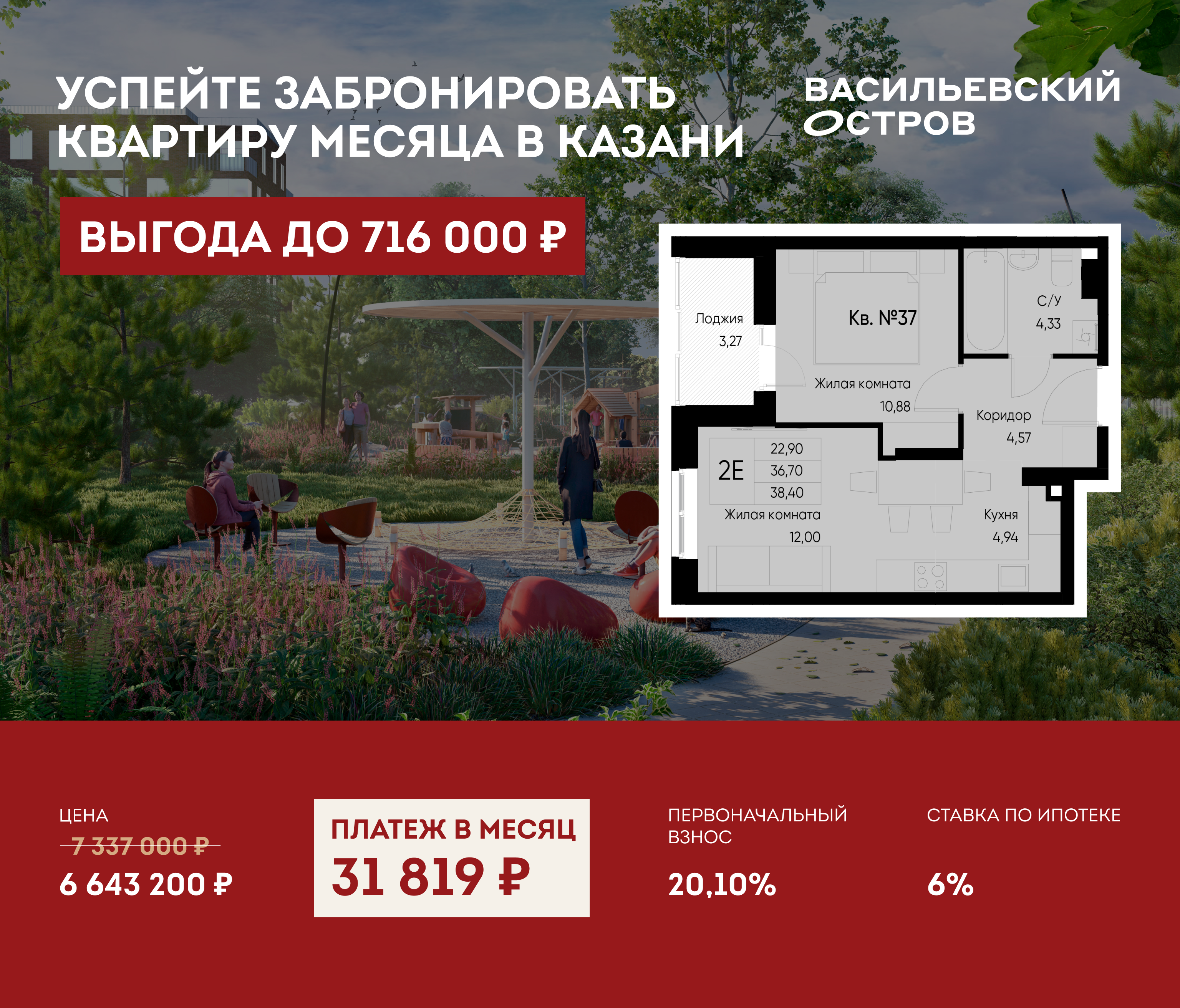 Парки и скверы «Васильевского острова» займут более 300 000 м². Это масштабные пространства для прогулок, пикников, отдыха с семьей и общения с природой.